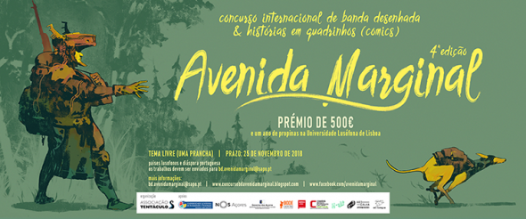 A quarta edição do Concurso Internacional de Banda Desenhada/ Histórias em Quadrinhos Avenida Marginal está a receber narrativas numa única prancha (página) até 25 de novembro de 2018. O primeiro prémio consiste de 500 euros e um ano de propinas pagas em licenciatura ou mestrado na Universidade Lusófona de Lisboa.