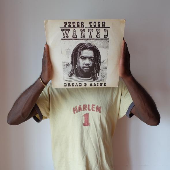 It is the realization of an old dream, that of articulating visual work to that of record collecting. It relates to the desire to preserve memory, to search for roots, transmission, and continuity. “To bring the memory of my grandmother to my daughter.” And, in this case, the memories are expressed in photographs of the author with vinyl (who has even considered printing them in silkscreen), cloths, and quotes from Bob Marley, Patrice Lumumba, Lélia González, Ângela Davis, and James Baldwin, and a sound manifesto entitled “Express yourself”, produced by Ninho Marimbondo (Lucky and Dedy Deaad) in a Beat Activism tone, in a water-like sound, with piano played by his 9-year-old daughter, quisange and rattles.