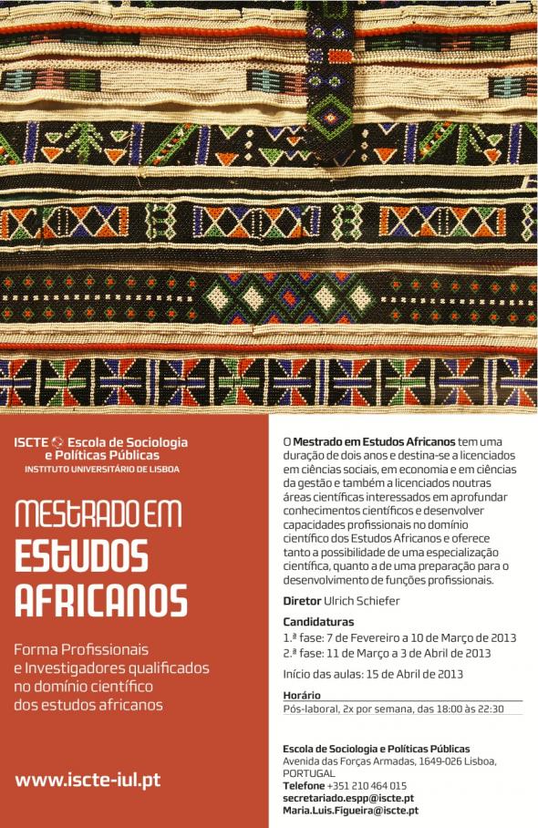 Mestrado em Estudos Africanos, ISCTE - 2ª fase candidaturas até 3 de Abril 2013 - Inicio das aulas 15 Abril 2013