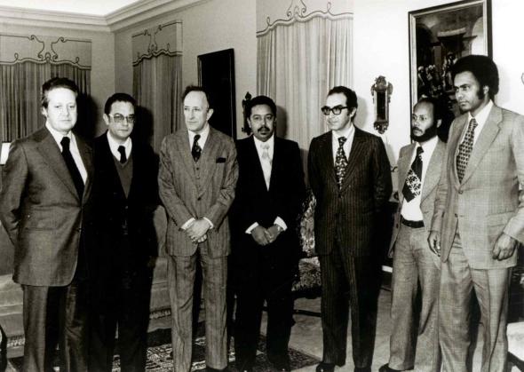 Delegações portuguesa e cabo-verdiana que negociaram o Acordo de Lisboa para a proclamação da Independência política de Cabo Verde, a 5 julho 1975, recebidas pelo Chefe do V Governo Provisório Português, Vasco Gonçalves