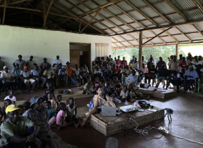 Fala-se em crioulo guineense, língua franca das 17 línguas na Guiné Bissau. Tio Pereira (no tempo da luta, colega de Flora Gomes na Escola Piloto de Conakry) dá as boas vindas as donos da terra, professores, estrangeiros: “na tabanca mais antiga de Mansoa, inauguramos a nossa casa bonita que vai servir para todas as comunidades. O conhecimento é ilimitado.” Filipa César introduz o atelier que promoveu, com Sónia Vaz Borges e Marinho de Pina e a comunidade de Malafo, sobre modos e arquiteturas de educação durante a luta de libertação. Foi aí que construíram coletivamente a primeira maquete da Mediateca na pátio da escola. Suleimane Biai defende a Mediateca como um espaço de solidariedade e relembra Cabral que disse “os que sabem devem ensinar os que não sabem”. Valoriza a vinda dos livros, mas é da opinião que, nas escolas, as matérias deviam ser lecionadas em crioulo. Como dirigente do Fórum da Paz Jasmina Barkhausen reforçou o mal que a Alemanha fez aos países africanos e como a Guiné é território de memória e de luta. A importância dos filmes e arquivos para estudantes, e saber interpretar o arquivo pois não há memória neutra. Associou este projeto aos efeito da luta de Cabral até hoje, uma vez que envolve agricultura, ecologia, crioulidade, igualdade de género, interculturalidade e práticas de paz. Também estiveram presentes representantes da Satna Fai - Associação de mulheres agricultoras de Malafo, com a porta voz N’sai Ndiba que gere, com Pereira na Onça, a Mediateca e que construiu a padaria Abotcha.
