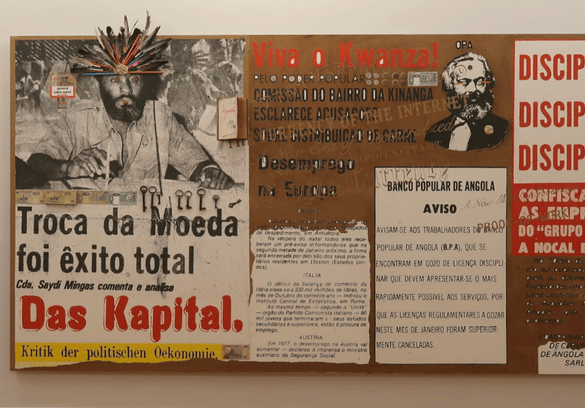 Memória Fantasma, tal como o jornal da parede tão comum em 1975 e 1976 na Angola recém-independente, reforça o papel, torna-o vertical, dá-lhe uma espinha dorsal. Aplicando pressão, cortando a superfície, Yonamine transforma os media num meio — o meio da sua arte, o meio que canaliza os espíritos. Não varras à noite, para não chamar os kalundus, dizem em Luanda. Em todo o mundo, temos varrido à noite. Espíritos inquietos possuem-nos. A ligação entre fascismo e colonialismo que Aimé Césaire discerniu é o pão nosso de cada dia neste início do século XXI. De plataforma em plataforma, consumimos as imagens, inflamamo-nos de raiva, eriçamo-nos de medo, temos os nossos corações partidos, ficamos sem dormir de tristeza. E não é apenas fora de nós, não é só algo que vem de fora para dentro — líderes corruptos, condições económicas injustas, desastre ecológico. Nós participamos. «Aceitamos os termos e condições» com um clique, várias vezes ao dia.