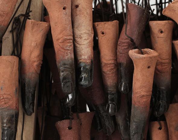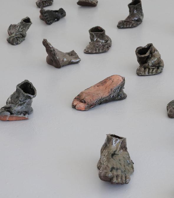 Na cerâmica, produzida a partir dos rios da província de Maputo e misturada com pó de vidro obtido na África do Sul, encontra-se a essência da exposição. Dela nascem 51 esculturas de pés, todos esquerdos, moldados de forma a sugerir movimento. O número remete para o artigo 51.º da Constituição da República de Moçambique, que consagra o direito à liberdade de reunião e manifestação.