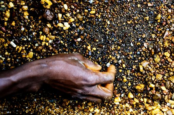 Os olhos de Nuno não largam, nem por um segundo, o fundo do tabuleiro da lavaria cheio de pedrinhas baças, beges, castanhas, negras. As pontas dos dedos de Nuno varrem as pedrinhas lavadas. Não há palavras, não há vento, nem qualquer outro ruído na paisagem africana, ao fim do dia. É o momento em que tudo fica suspenso, injectado de adrenalina, à espera de um brilho que faça a diferença a quem o vir primeiro.