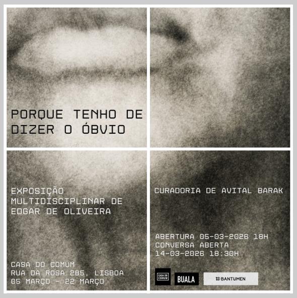 ** A primeira fase do projeto de Edgar de Oliveira, Porque Preciso de Dizer o Óbvio, abrirá na Casa do Comum a 5 de março de 2026.