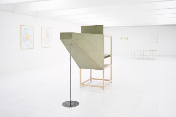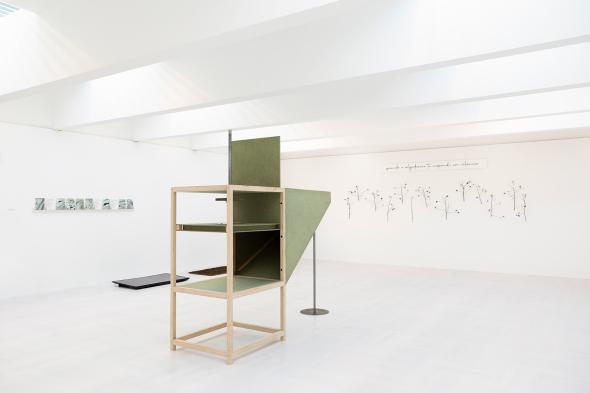 Aqui, a prensa que seca amostras de plantas, utilizada na tentativa de categorizar a botânica, emite sons capturados em uma ilha, no meio do Atlântico, em um disco de vinil, dentro de uma caixa. Vã tentativa de compreender os sons de um instante manipulado, traduzido, aberto, recluso, transposto, reproduzido em uma miríade de novos sons, novas cores, novas paisagens, outras vegetações — você viu o medronheiro lá fora? Tentamos criar caixas onde guardar aquilo que sabemos do mundo, mas tudo que é vivo morre e se transforma a cada instante-já. Esse som, aquela árvore, eu e você, já não somos exemplares do que éramos há minutos atrás.