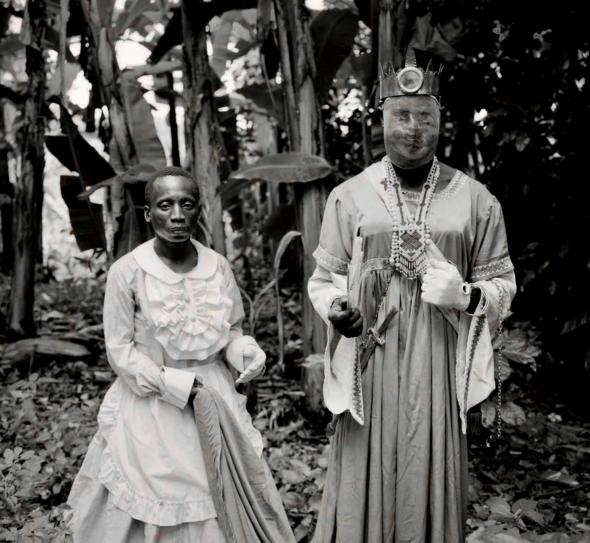 Os dois trabalhos dialogam num dispositivo que se inverte e complementa: de um lado, o homem negro nos trajes do homem branco, representando uma farsa palaciana; do outro, representações de homens brancos vestidos como homens negros, simbolizam a ordem régia.