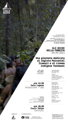 Por ocasião do 80º Festival Internacional de Cinema de Veneza, será realizado no dia 4 de setembro na Sala Laguna um dia dedicado ao cinema yanomami intitulado “Gli Occhi della Foresta” (Os Olhos da Floresta) promovido pelo projeto Isola Edipo, realidade cultural que realiza atividades artísticas e culturais principalmente na lagoa de Veneza, em colaboração com Giornate degli Autori e Fondation Cartier pour l’Art Contemporain.