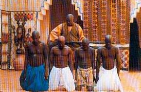 GUIMBA, UM TIRANO, UMA ÉPOCA, de Cheick Oumar Sissoko (1995)Em Guimba, Cheick Oumar Sissoko recorre a lenda de um chefe tradicional tirano (Guimba) para problematizar uma das pragas da maioria dos estados africanos: a tirania hereditária instaurada de forma implacável pelos dirigentes africanos depois das independências. A história de dominação cega que Guimba e seu filho impõem aos seus próprios congêneres acontece numa cidade do Sahel, mas poderia ser transposta a qualquer país da África. Em Andanggaman, Roger Gnoan M´Bala vai mais longe. Ao revisitar o tema da escravidão, o cineasta de Costa do Marfim não se contenta com uma representação lamuriante desse momento doloroso da história da África. Ao contrário, ele põe em cena a controvertida participação dos chefes tribais no tráfico negreiro. Esta reconstituição histórica põe em questão, de forma crítica, a responsabilidade dos chefes de Estados africanos.