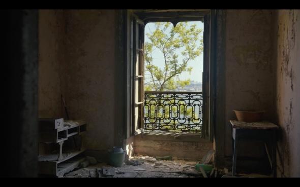 O plano segue até desfazer esta ruína numa geografia emocional. Aquele asilo, outrora ocupado informalmente por famílias caboverdianas, precede o realojamento para o Monte da Caparica, gesto que a voz lembra como um momento simultaneamente trágico e salvador.