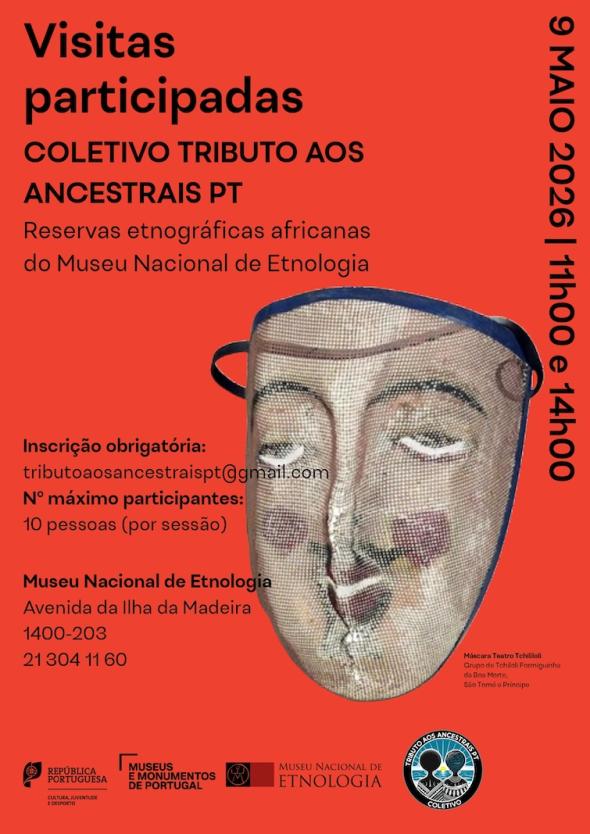 O Coletivo Tributo aos Ancestrais PT, em parceria com o Museu Nacional de Etnologia (MNE), em Belém, Lisboa, tem a honra de convidá-lo(a) a participar nas penúltimas visitas participativas às reservas etnográficas africanas do Museu, que terão lugar no sábado, dia 9 de maio de 2026, das 11h às 12h30 e das 14h às 15h30. Esta iniciativa proporciona uma oportunidade exclusiva de acesso a uma das maiores reservas de artefactos africanos existentes em Portugal, composta por aproximadamente 8.000 objetos provenientes de 28 países.