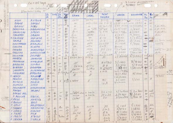 Nessa folha deparamo-nos com uma rasura contemplando cerca de metade dos dados empíricos preenchidos, talvez porque estes mudaram ou porque ele se enganara a passar a informação. De qualquer das maneiras, demonstra, parece-me, um tipo de trabalho bastante meticuloso. Carvalho não era pessoa para ter receio de escrever três vezes a mesma coisa (mesmo listagens extensas), de se envolver fortemente com o material que recolhia, se isso lhe permitisse depois articular de uma maneira mais ampla os dados de que passava a dispor, ajudando-o a criar as obras que produzia.