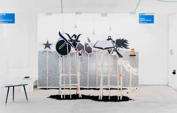C.o.n.s.t.r.u.c.t.i.o.n. reúne signos desarticulados do seu significado oficial e responde ironicamente à ideia de memorial ou monumento. Heráldicas, QR Codes, “souvenirs” políticos e estandartes lembram os despojos de uma batalha, adensam o vocabulário do artista e a sua liberdade criativa, indo muito além de qualquer significado estritamente político.