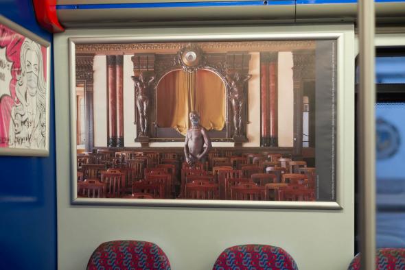 Kiluanji Kia Henda; A Sina de Otelo (Act. I, II, III, IV e V); 2013; Instalação em comboio da CP - linha de Sintra; Impressão digital sobre papel. ©Teresa Santos
